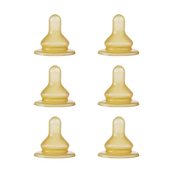 Replace lost or damaged nipples with this pack of by Replacement Bottle Nipples. These latex nipples fit all 5-ounce and 9-ounce First Essentials by bottles. The ribbed, vented nipple helps reduce colic and prevents nipple collapse. This pack of 6 medium-flow latex bottle nipple replacements is BPA-free and dishwasher-safe.