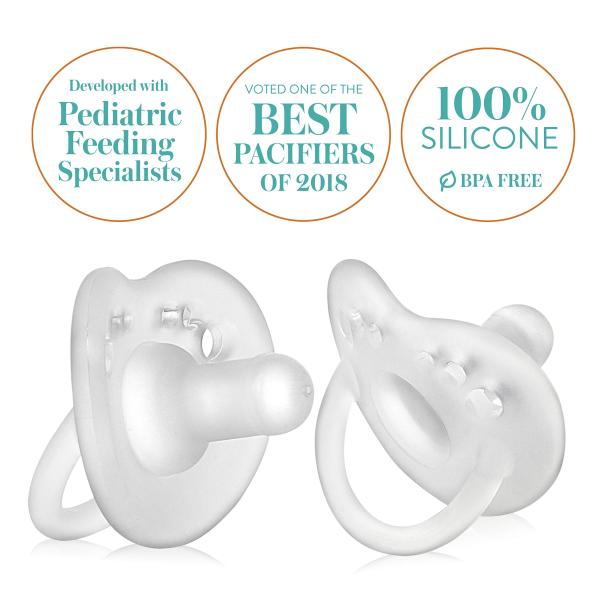 2: Developed with support from Pediatric Feeding Specialists, the cylindrical shape of this binky allows your baby to mimic the tongue shape they make while breastfeeding, helping to safeguard your breastfeeding journey.